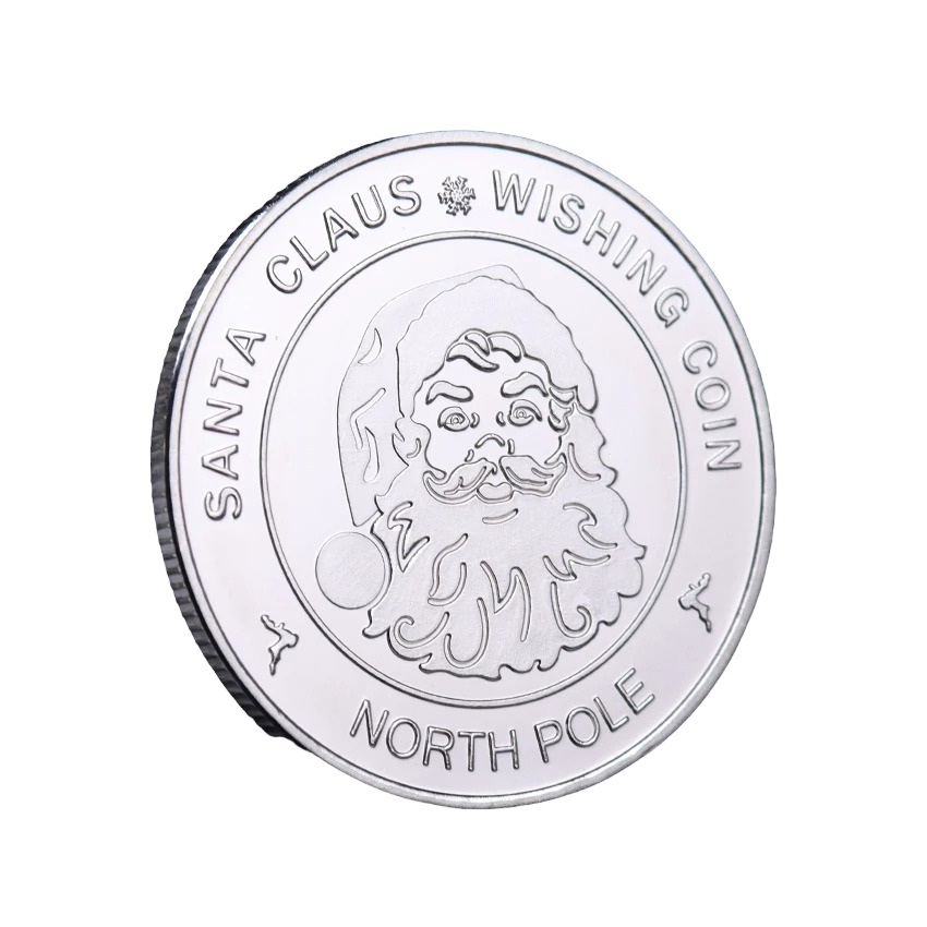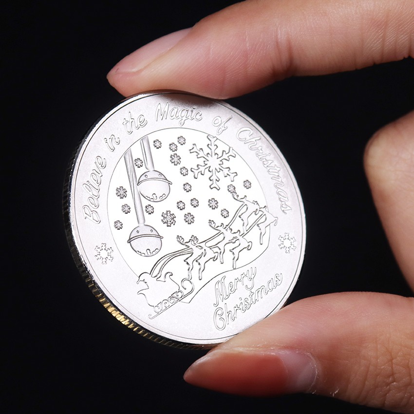 Moeda de colecção em prata com o Pai Natal Moeda comemorativa com desejos de Natal Moeda de Natal dupla face com o Pai Natal e renas 4 cm