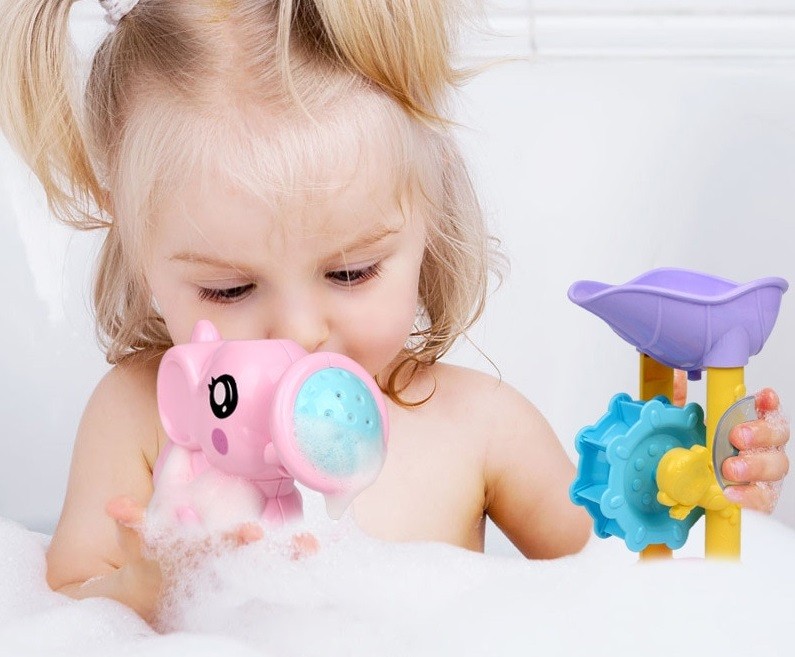 O banho torna-se uma diversão. A criança pode verter água e observar como flui.