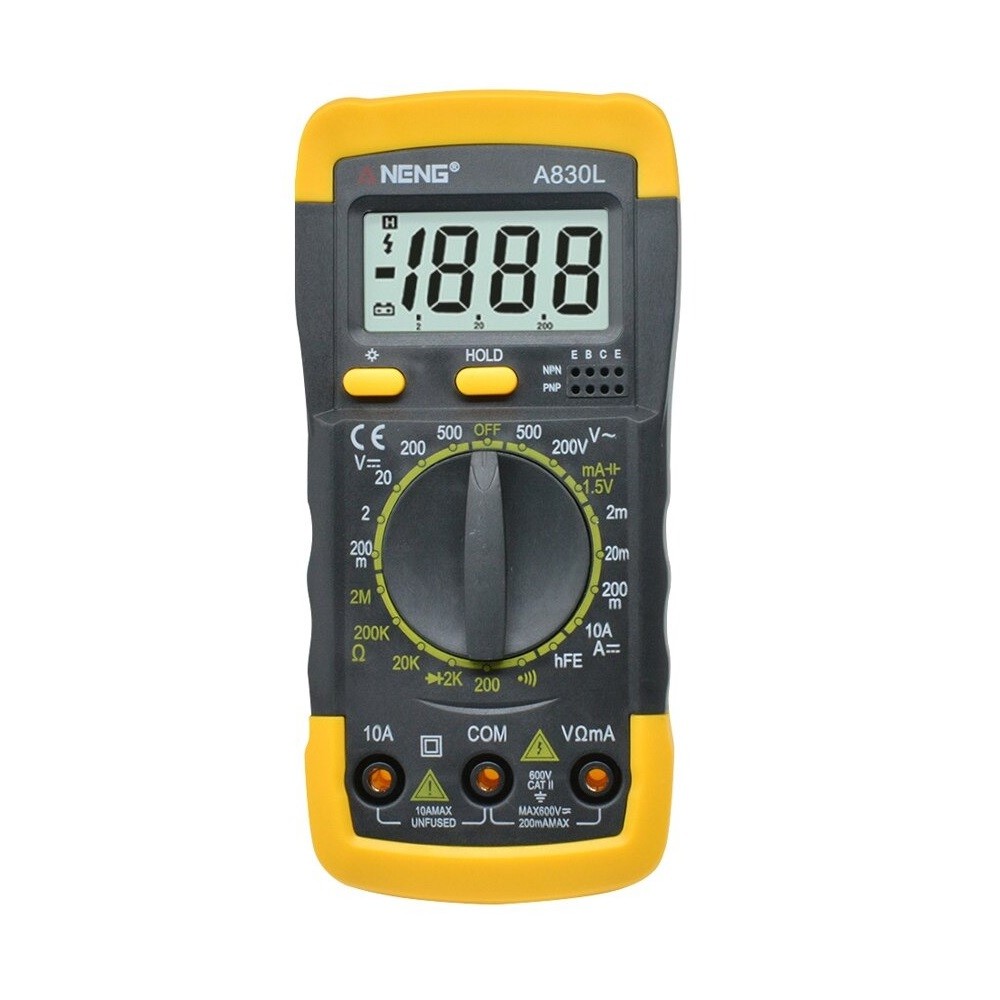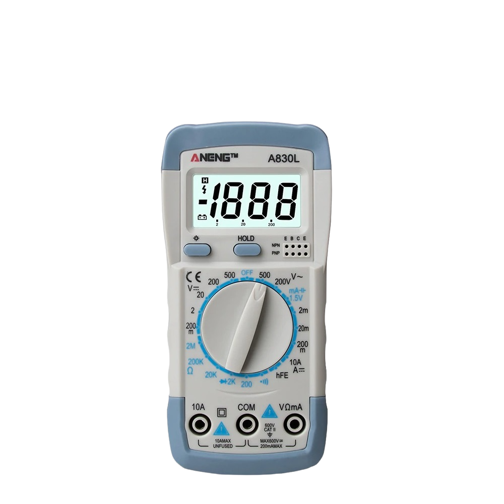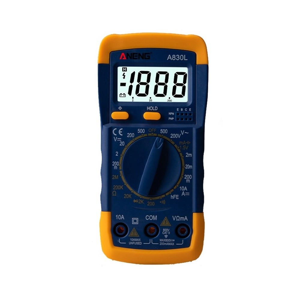 O nosso multímetro digital é uma ferramenta versátil e fiável para medições numa ampla gama de aplicações. Tem tensão máxima contínua de 600 V com precisão ± 0,5% e funções de medição de resistência, temperatura e corrente. O ecrã retroiluminado facilita a leitura dos valores medidos mesmo em condições de iluminação adversas. A lanterna LED é um complemento prático para medições em locais escuros.
