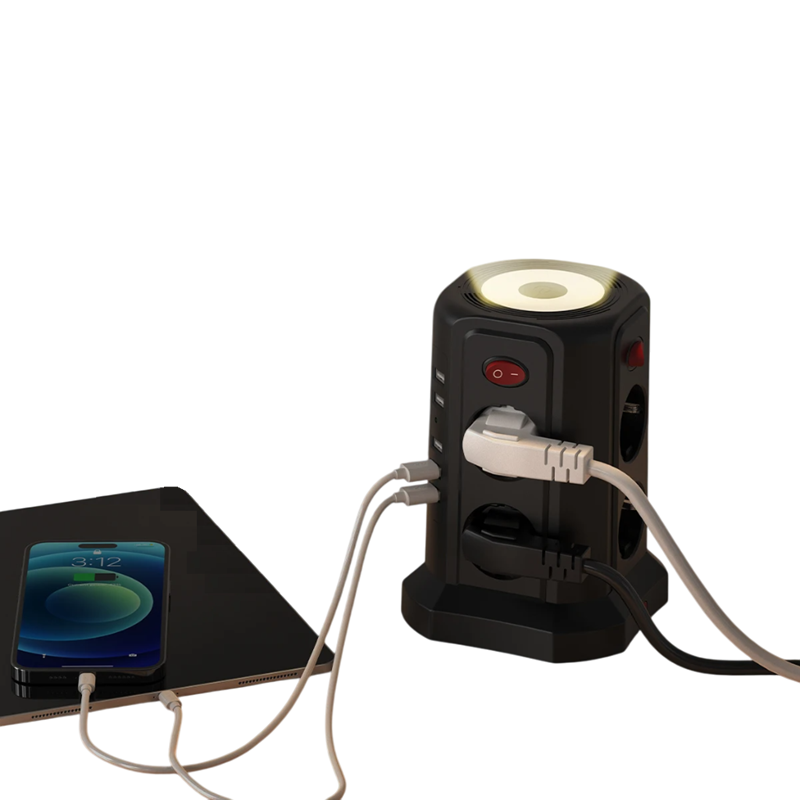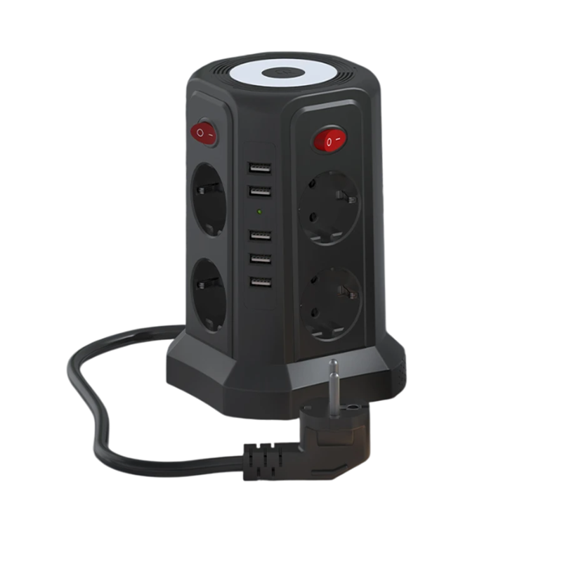 Esta multiplicadora de tomadas multifuncional oferece tudo o que é necessário para uma alimentação confortável e segura de vários dispositivos ao mesmo tempo. Está equipada com oito tomadas AC e cinco portas USB com suporte para carregamento de 2,4A por porta, o que permite a alimentação simultânea de vários dispositivos com diferentes tipos de conectores. Graças à tensão universal de 110-250V e fichas EU, é adequada para escritórios em casa e lares comuns. O comprimento do cabo de extensão de 3 metros garante um alcance e flexibilidade adequados na colocação dos dispositivos.