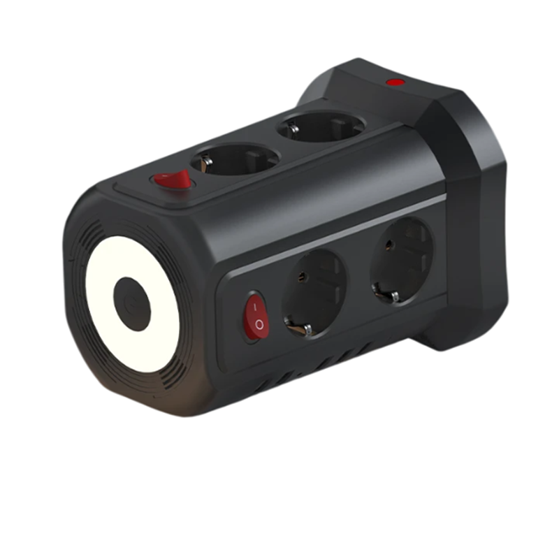 A tomada é equipada com controlo de alimentação individual de cada lado, o que permite ligar e desligar facilmente secções seleccionadas sem a necessidade de desconectar todo o dispositivo. A luz nocturna integrada na parte superior facilita a orientação no escuro e ao mesmo tempo acrescenta um elemento de design moderno. A segurança é garantida por elementos como protecção contra sobretensão e sobrecarga, que protegem os seus dispositivos contra danos causados por flutuações eléctricas.