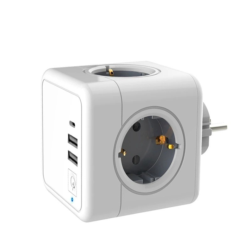 Multiplicador de tomada 2x USB, 1x USB-C, 4x tomada