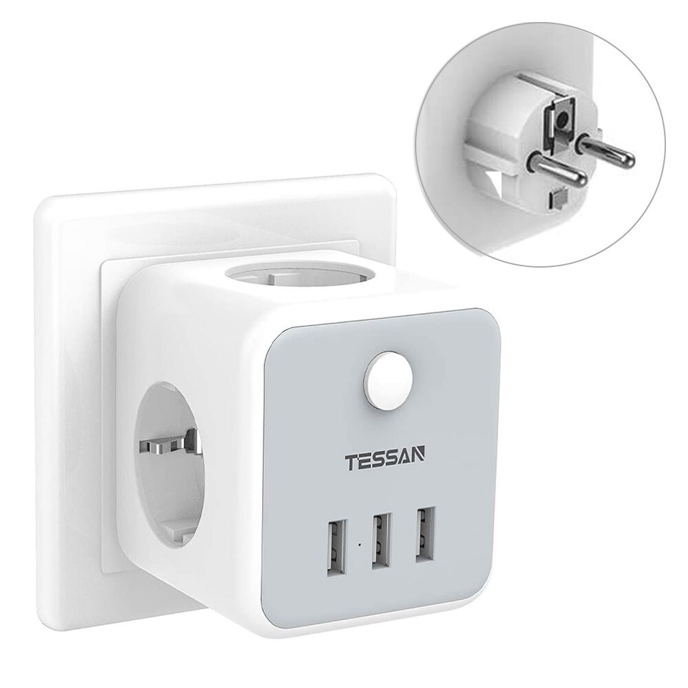 Multiplicador de tomadas 3x USB, 3x tomada