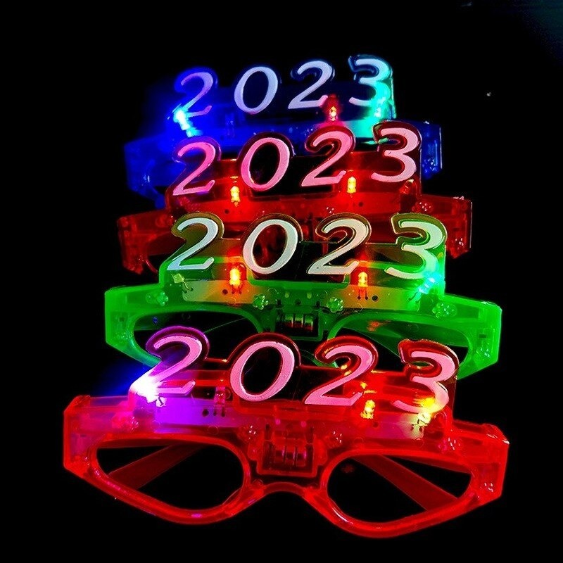 Óculos neon com o ano 2023. Adequados para a passagem de ano. 6 LEDs. Fabricados em plástico resistente. Dimensões: aprox. 15 x 14 cm Descrição completa
