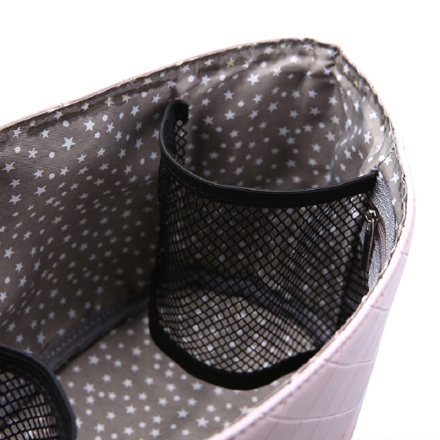 Sem tampa superior, fundo plano, duas divisórias para garrafas.