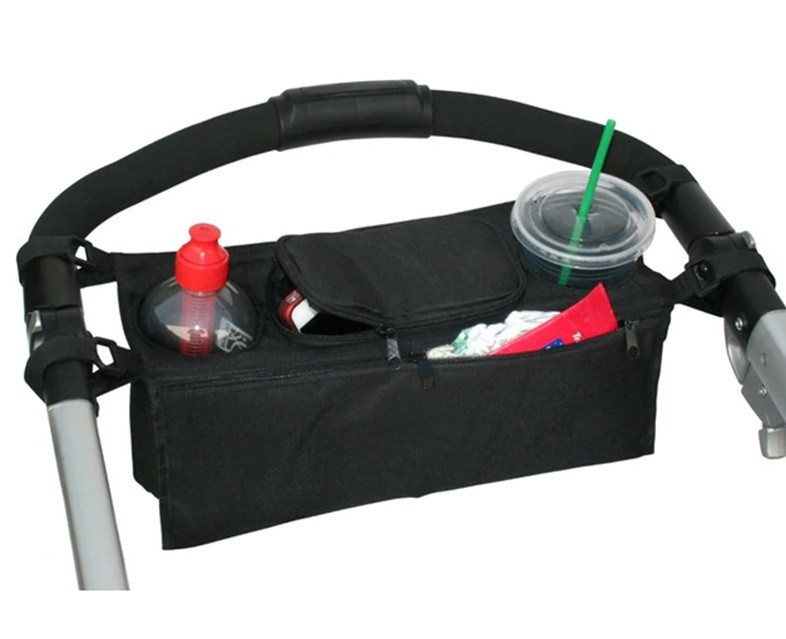 Este organizador prático é facilmente fixado a qualquer carrinho.