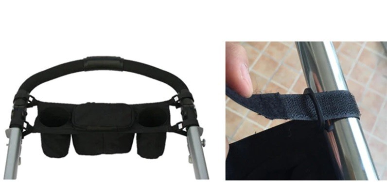 O organizador prende-se facilmente ao punho do carrinho e tem tudo o que precisa à mão.