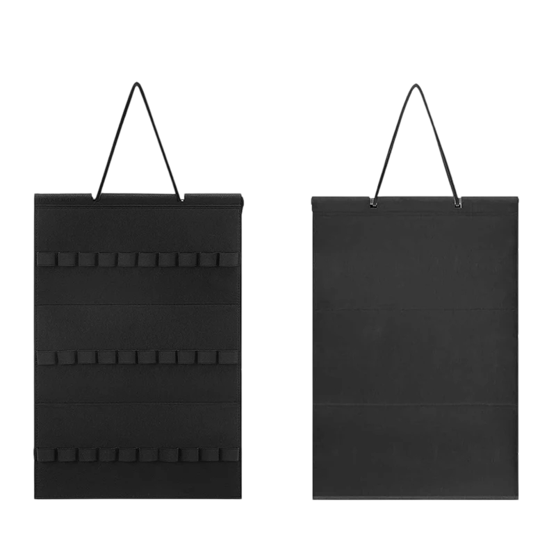 O material do organizador é feltro, que é leve e mantém a sua forma. Graças a isso, o organizador pendura-se bem na parede e permanece estável durante o uso. A construção é complementada por um laço superior para suspensão, que permite uma colocação fácil, por exemplo, num gancho, na parede ou na porta.