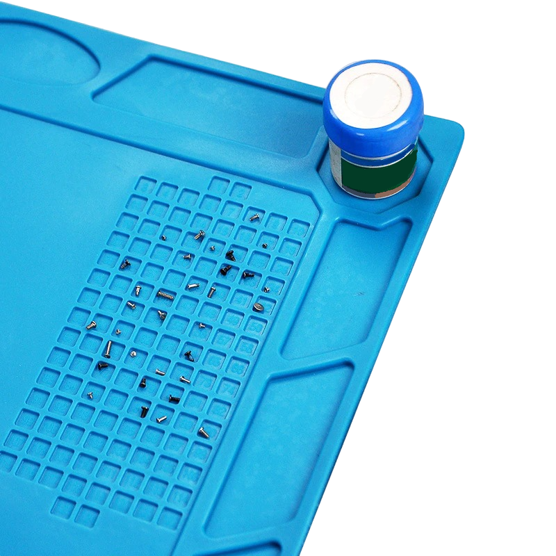 A pá de soldadura é projetada a pensar no seu conforto. É não só resistente ao calor para a segurança dos seus projetos de soldadura, mas também tem dimensões de 30 x 20 cm, para que tenha espaço suficiente. Esta pá contém compartimentos nas bordas para parafusos e ferramentas, que lhe permitem separar facilmente os componentes para um acesso fácil.