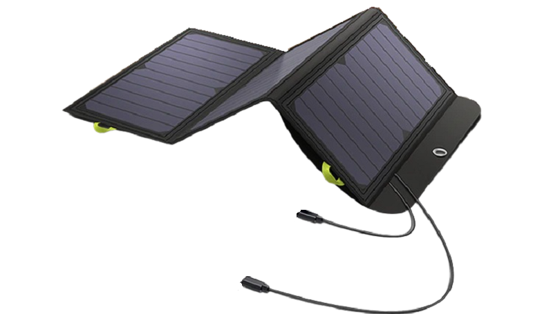 Este painel solar, que se carrega com luz solar e depois carrega o seu dispositivo eletrónico. É fabricado em material de alta qualidade. Adequado para telemóvel, tablet ou câmara digital. É ideal para viajar.
