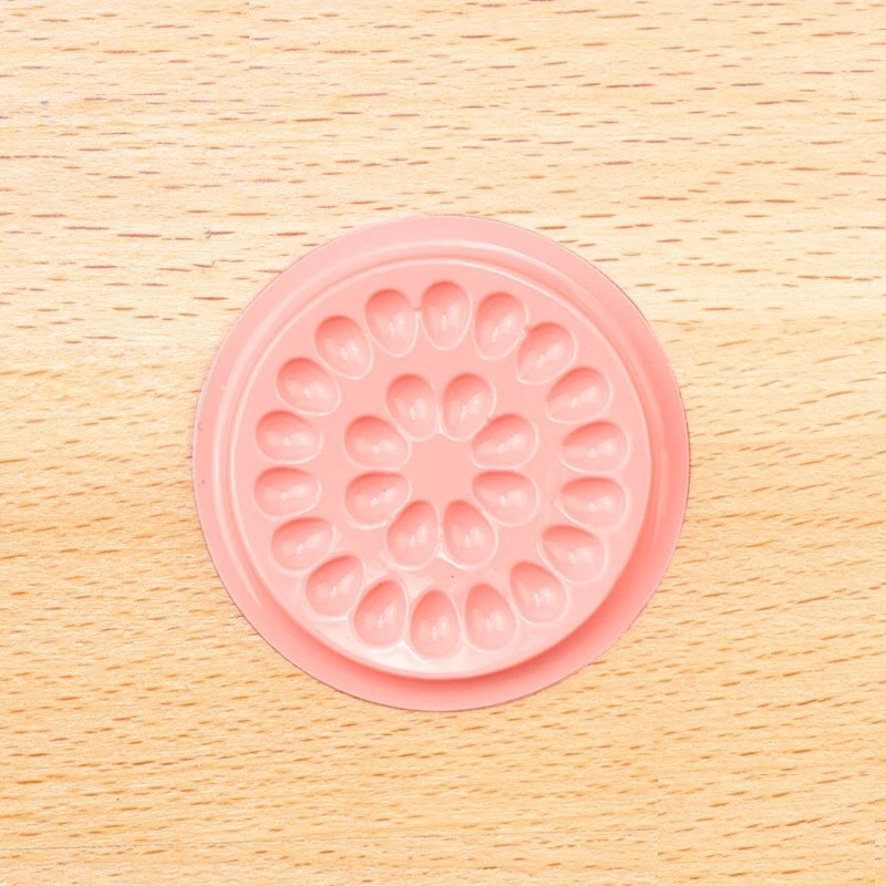 A palete é para 26 gotas de cola. Adequada para cola de pestanas. Fabricada em material seguro. Descrição completa