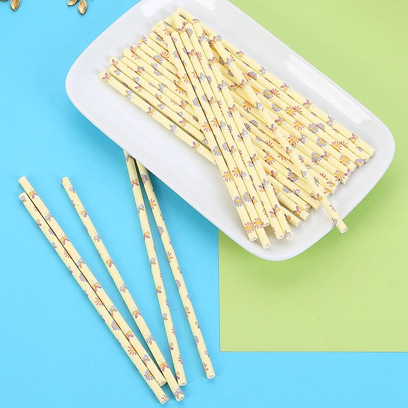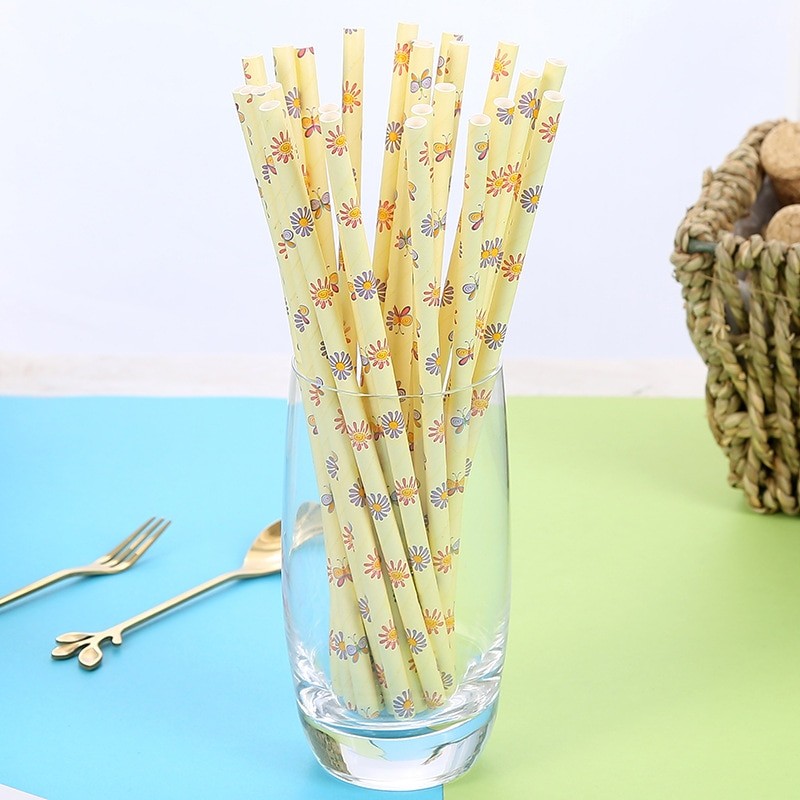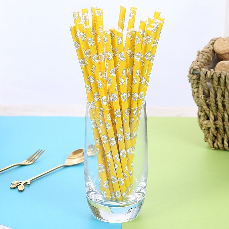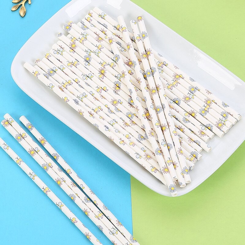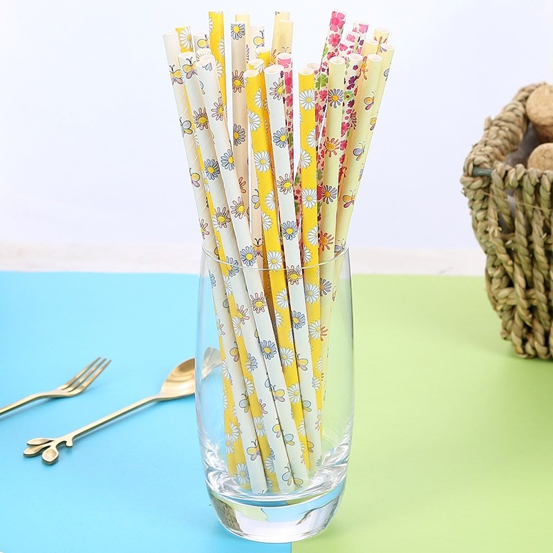 Palhinhas de papel com flores 25 unid