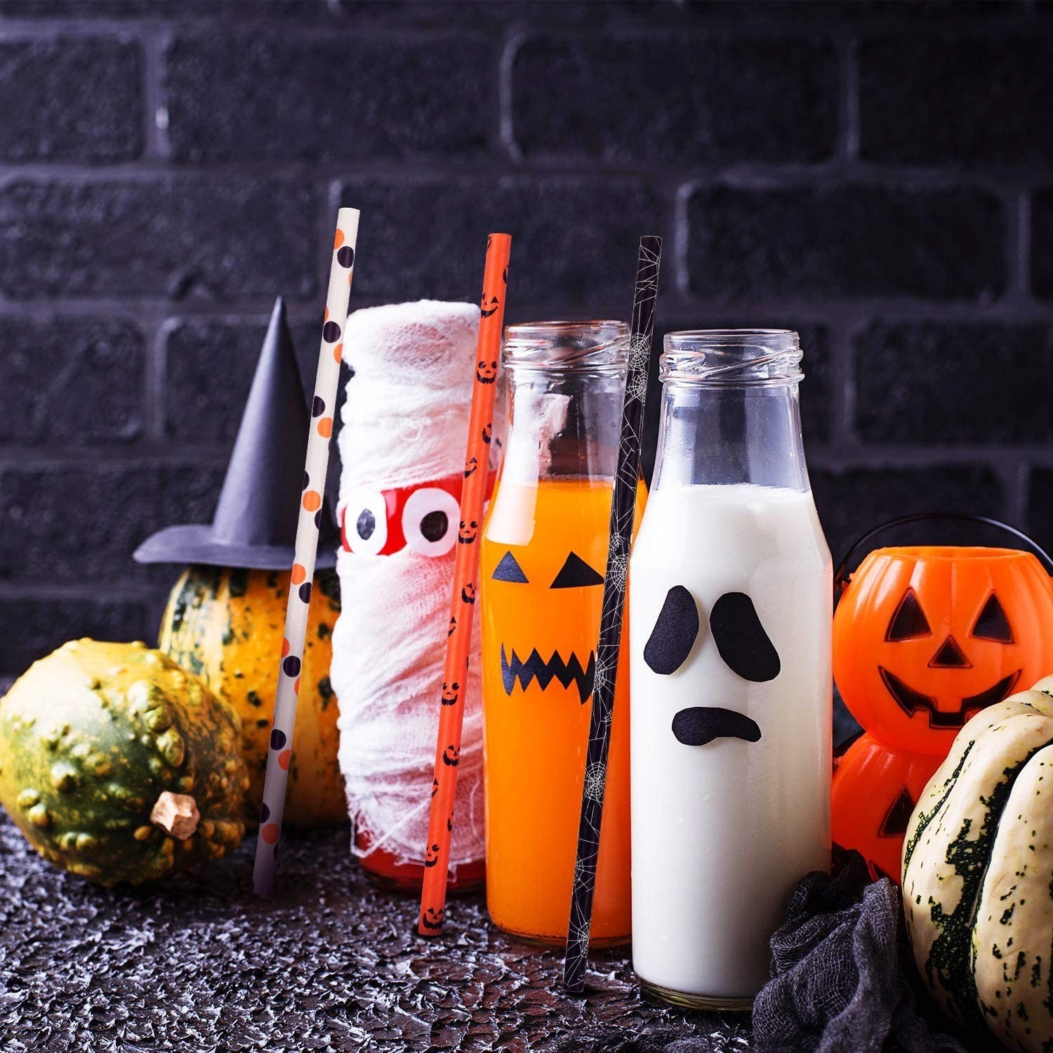 Ideais para a celebração do Halloween. Motivos originais das palhinhas, com os quais irá enriquecer a sua festa. As palhinhas são de uso único, por isso não precisa de se preocupar com mais louça.