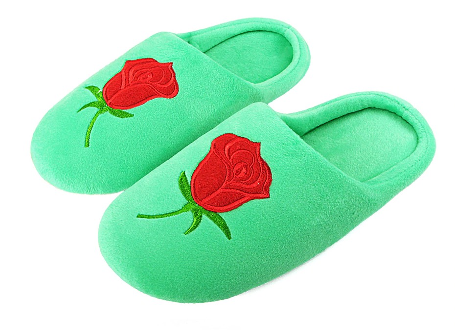 Estas maravilhosas pantufas com uma rosa bordada serão apreciadas por qualquer mulher.