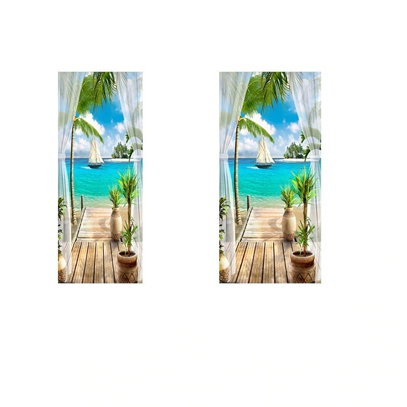 Papel de parede autocolante para portas com motivo de mar