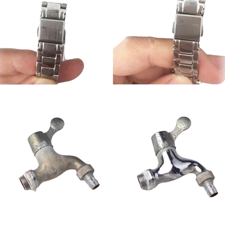 Esta pasta de polir remove facilmente manchas da superfície metálica. Graças às suas propriedades não abrasivas é totalmente segura e não danifica nenhum produto metálico. A pasta de polir é adequada para cobre, latão, prata de moeda, alumínio, aço inoxidável ou até mesmo ouro.