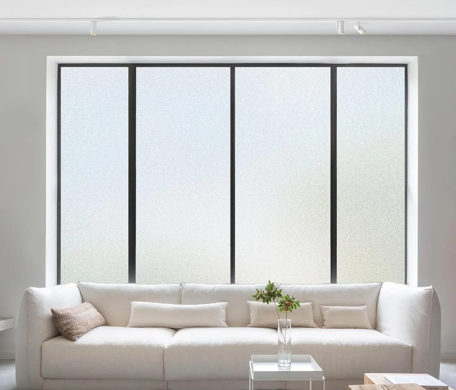 Película para janelas fosca 30 x 300 cm com adesão estática para aplicação fácil sem cola, ideal para garantir privacidade e decorar superfícies de vidro. Descrição completa