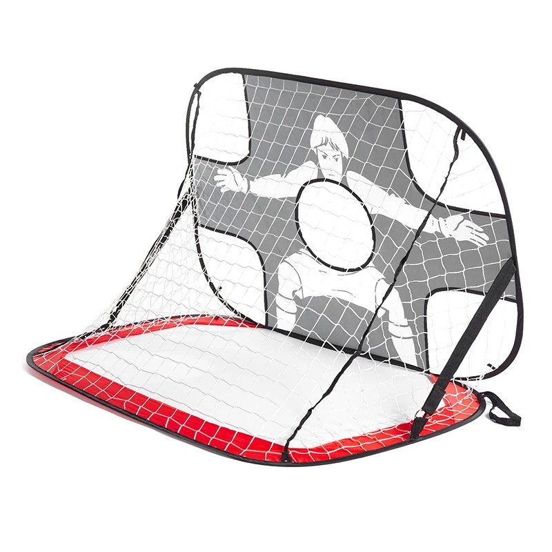 Baliza dobrável para crianças com tela para treino de precisão de remate. Montagem fácil, bolsa de transporte, adequada para o jardim e para o parque. Descrição completa