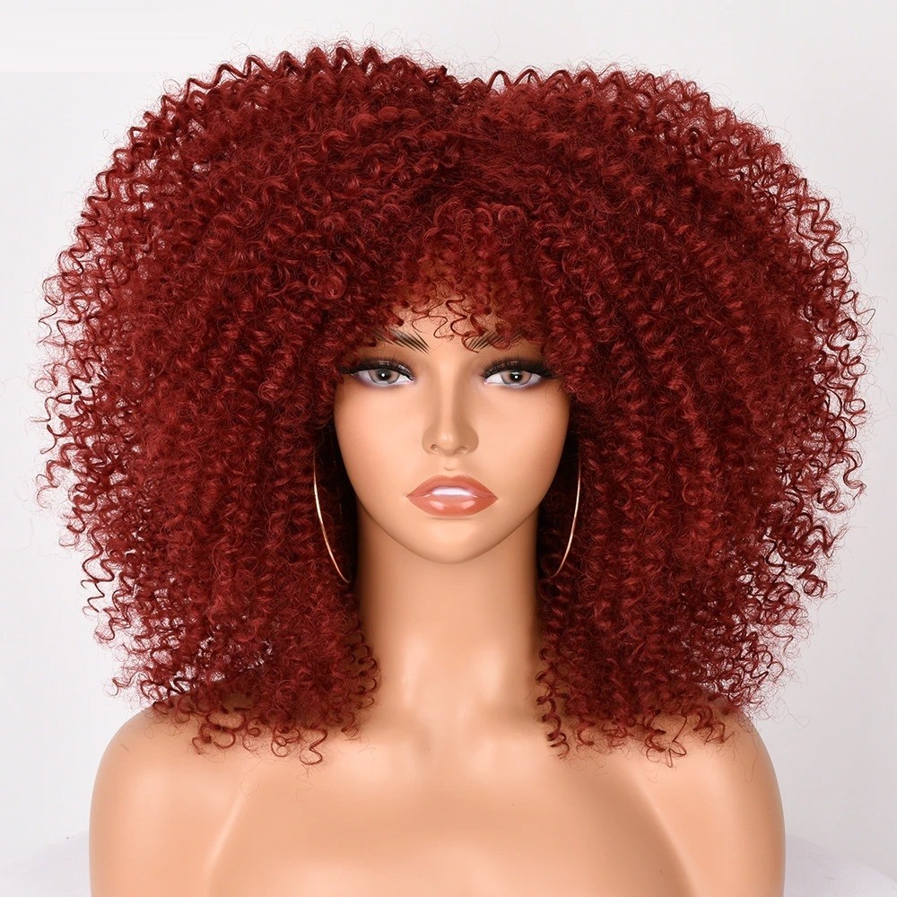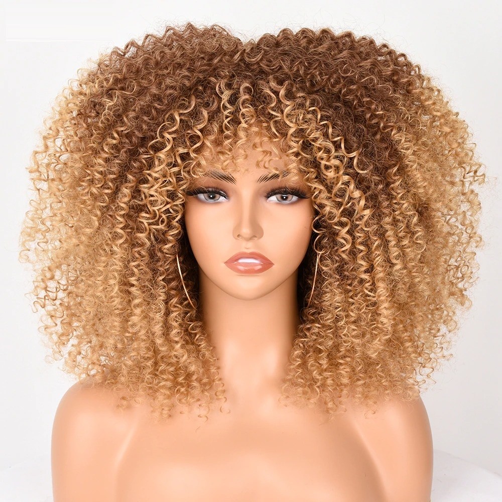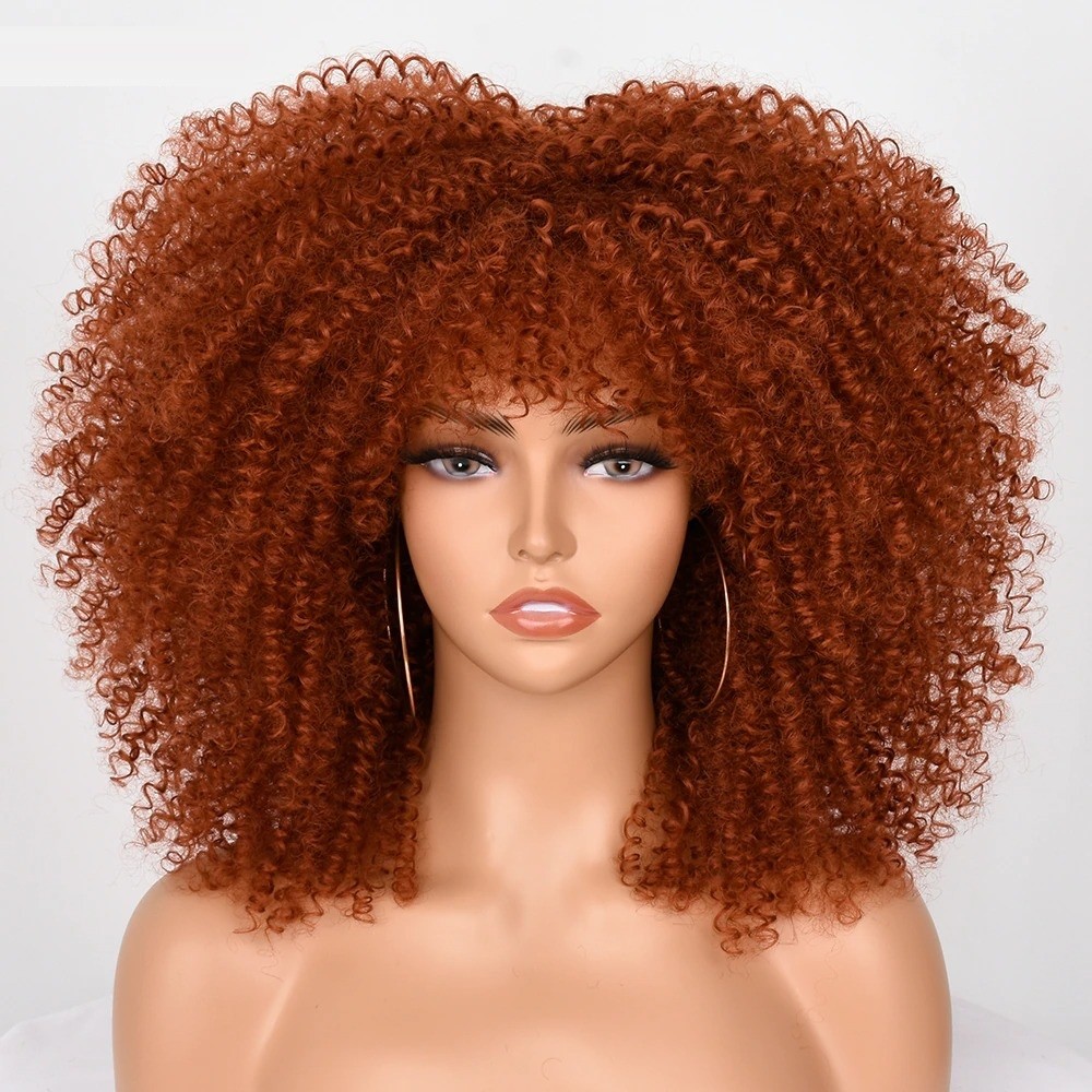 A peruca encaracolada feminina é fabricada a partir de fibras sintéticas de qualidade. Resistente a danos. Suave e confortável de usar. Pode ser lavada com champô e estilizada.