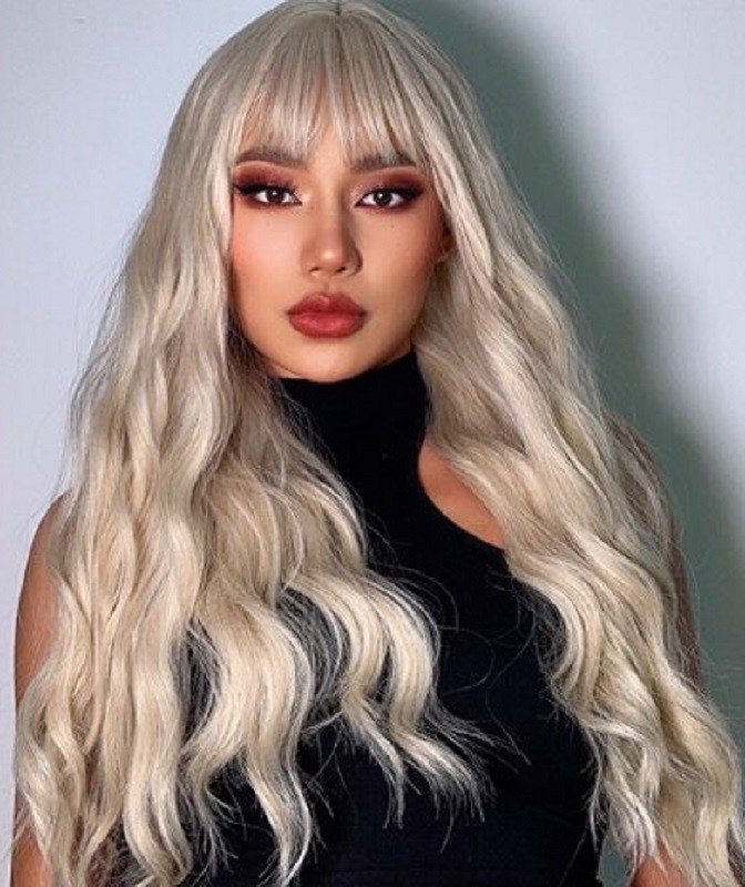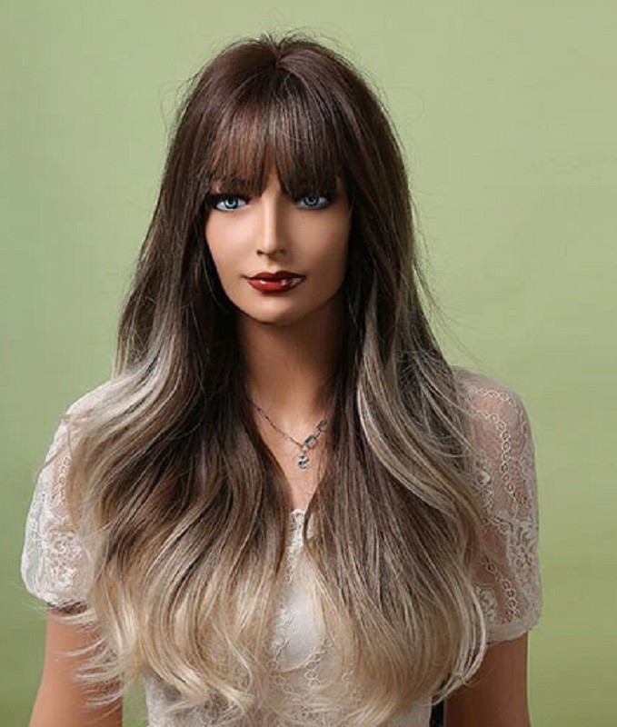Esta peruca feminina é fabricada com fibras sintéticas de alta qualidade. Pode ser penteada, lavada com champô e laca. Resistente a danos ou queimaduras. Aparência natural. Adequada para usar em qualquer lugar.