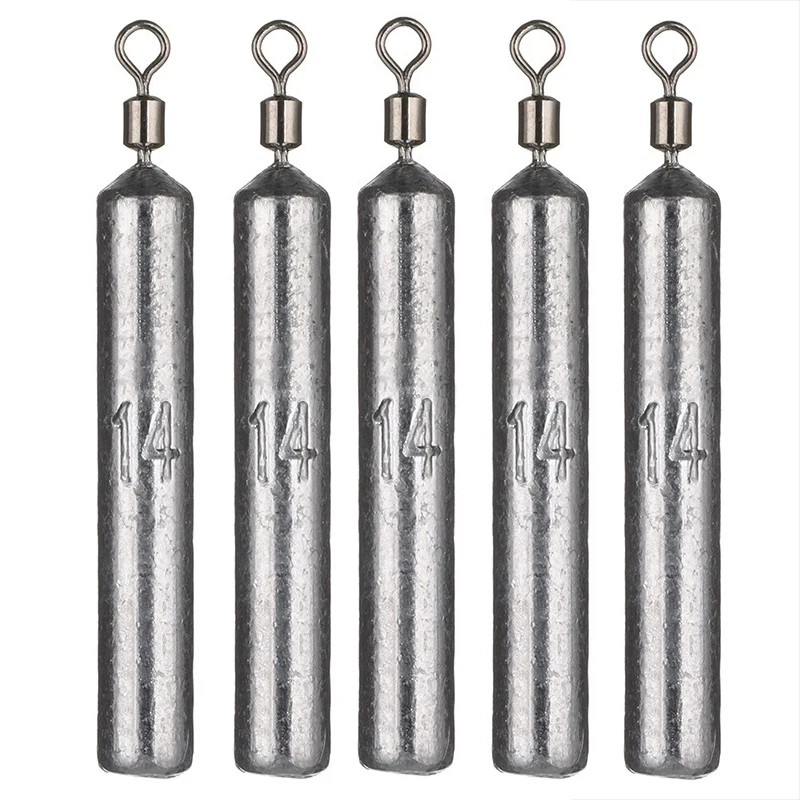 Pesca de olheiros de chumbo cilíndricos com girador 5 pcs 14 g Chumbadas para pesca Estabilidade na submersão Lançamento a longa distância Peso para a pesca de grandes peixes