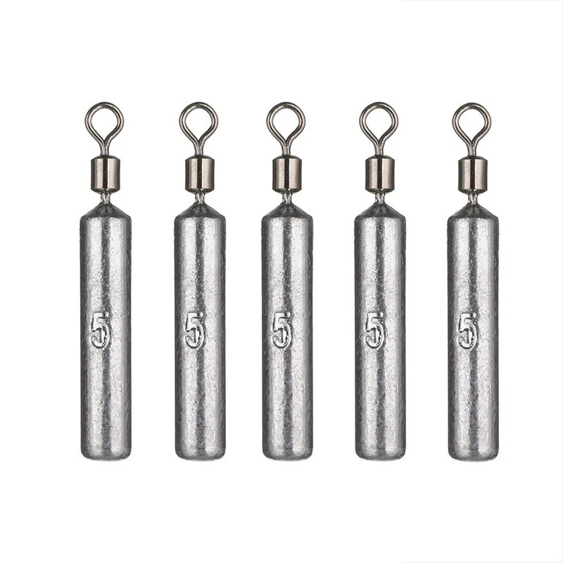 Pesca de olheiros de chumbo cilíndricos com girador 5 pcs 5 g Chumbo para peixe Mergulho estável Lançamento a longa distância Peso para pesca de grandes peixes