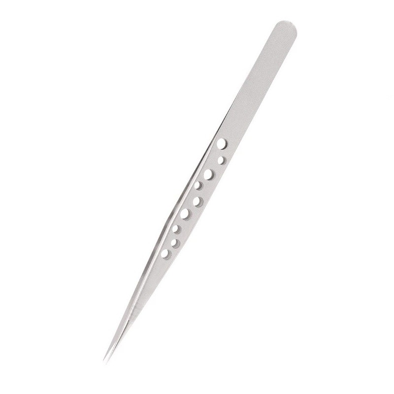 A pinça é fabricada em aço inoxidável de alta qualidade e durável, que é antirreativa. É o auxiliar ideal para alongar pestanas com a técnica de pestana a pestana. É adequada para profissionais.