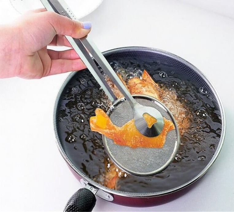 As pinças para fritar são um excelente auxiliar na preparação de pratos fritos em óleo quente.