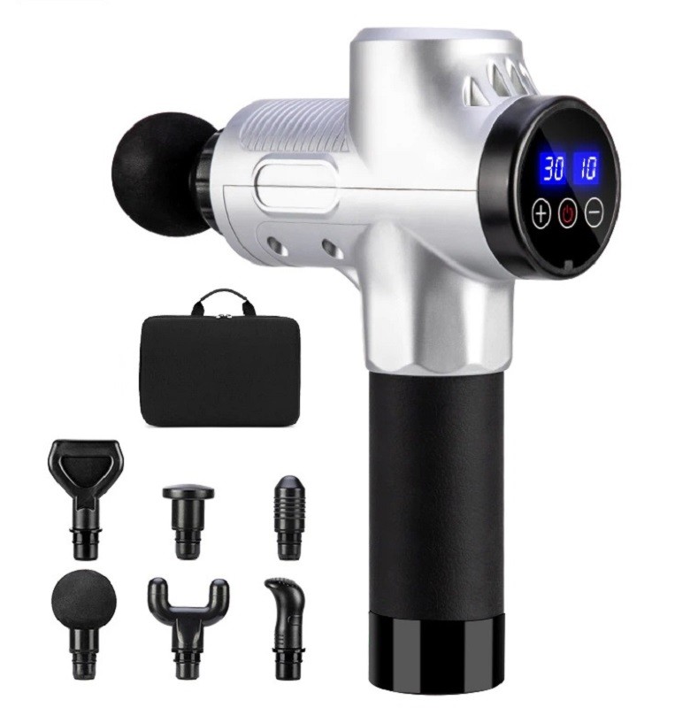 A pistola de massagem vibratória é uma ferramenta que estimula a circulação sanguínea e ajuda a relaxar os músculos tensos. As vibrações podem ser ajustadas em 30 velocidades diferentes. A pistola é controlada através de um ecrã tátil LCD. Na embalagem encontrará também 6 cabeçais intercambiáveis para diferentes tipos de massagem. A pistola de massagem é uma ferramenta ideal para atletas recreativos e profissionais, sendo indispensável para fisioterapeutas.