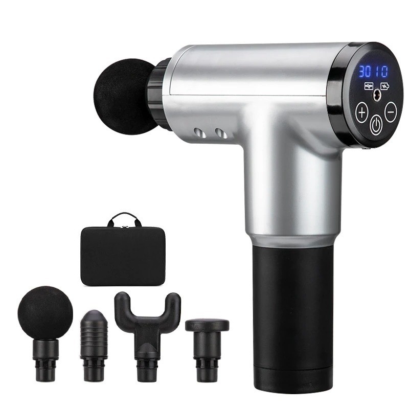 Esta pistola de massagem vibratória é um excelente auxiliar para aliviar a tensão muscular das pernas, costas, pescoço, ombros, etc. A pistola pode ser controlada através de um ecrã táctil LCD de alta resolução, permitindo ajustar a massagem de acordo com as suas necessidades. A massagem pode ser configurada em várias velocidades. Adequada para atletas recreativos e de alta competição. Para uma melhor focalização nas áreas do corpo, na embalagem também encontrará 4 acessórios intercambiáveis.