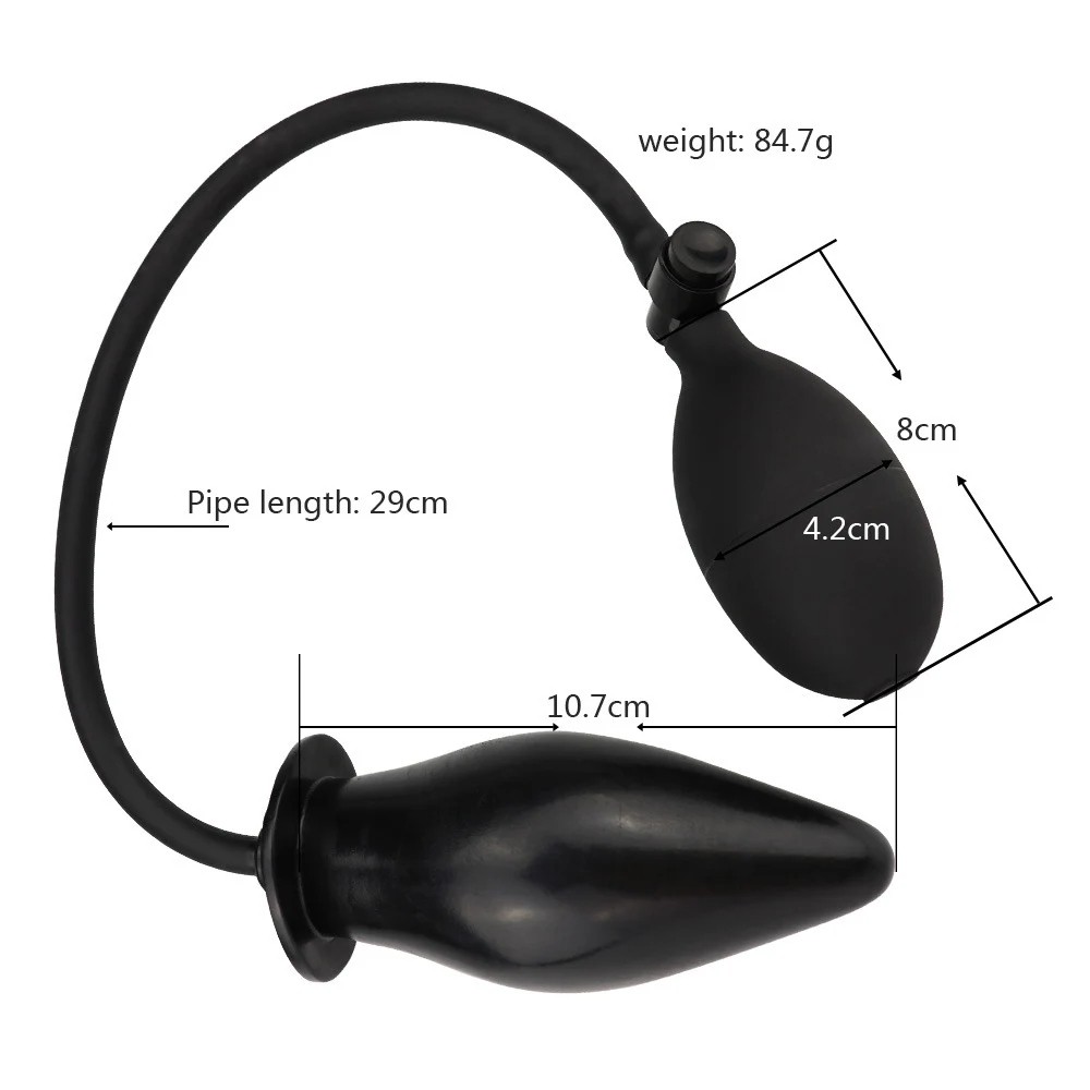 Este plug analógico inflável de silicone com 10,7 cm de comprimento traz uma nova dimensão de estimulação graças à possibilidade de regulação de tamanho. Com a bomba integrada, é possível inflar o plug progressivamente de acordo com as preferências individuais e a intensidade desejada da experiência. O material de silicone flexível e maleável adapta-se à forma do corpo e garante uma inserção e utilização confortáveis. O plug está ligado à bomba por um tubo flexível, que permite um manuseio fácil. A embalagem discreta protege a privacidade durante a entrega e o armazenamento.