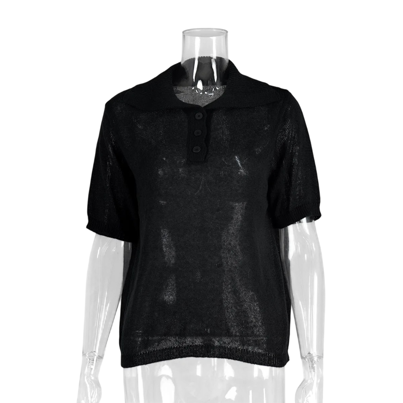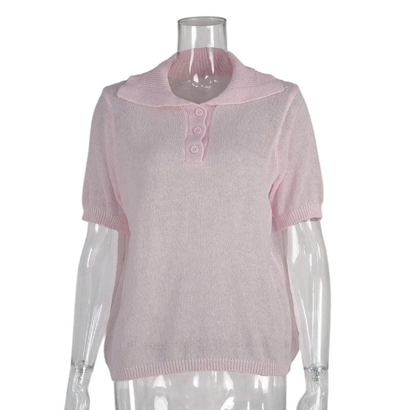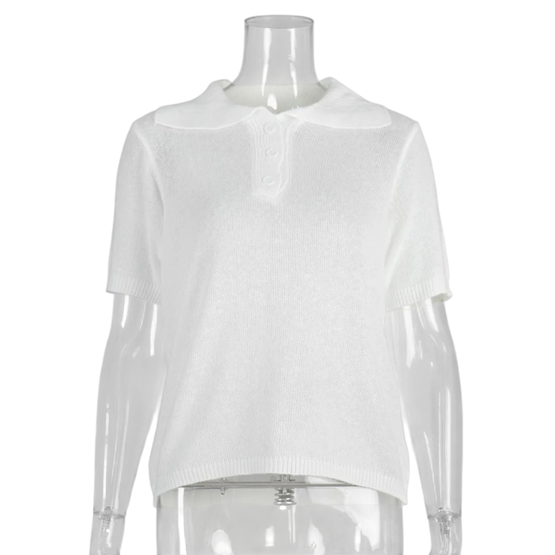 Polo feminina de manga curta em versão lisa Decote em V com colarinho e botões Algodão com poliéster