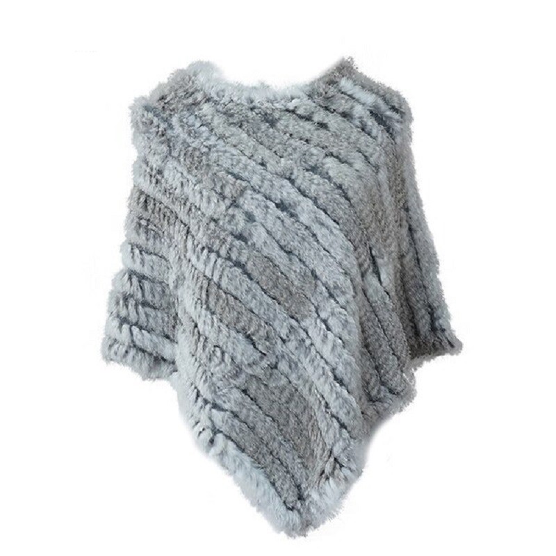 Poncho feminino de pele de coelho