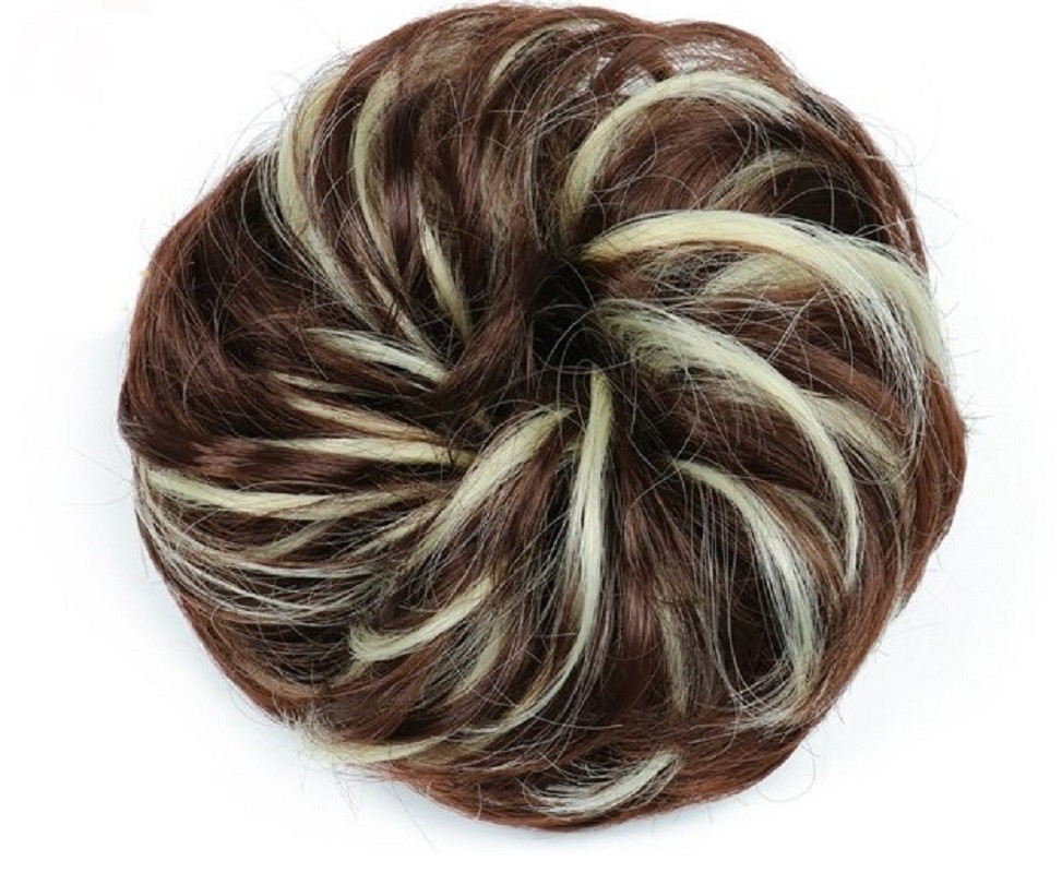 Postiço capilar com elástico. Válido especialmente para cabelos finos e ralos. Aspeto natural. Pode ser lavado com champô e penteado. O seu coque parecerá mais cheio e denso. Disponível em várias tonalidades.