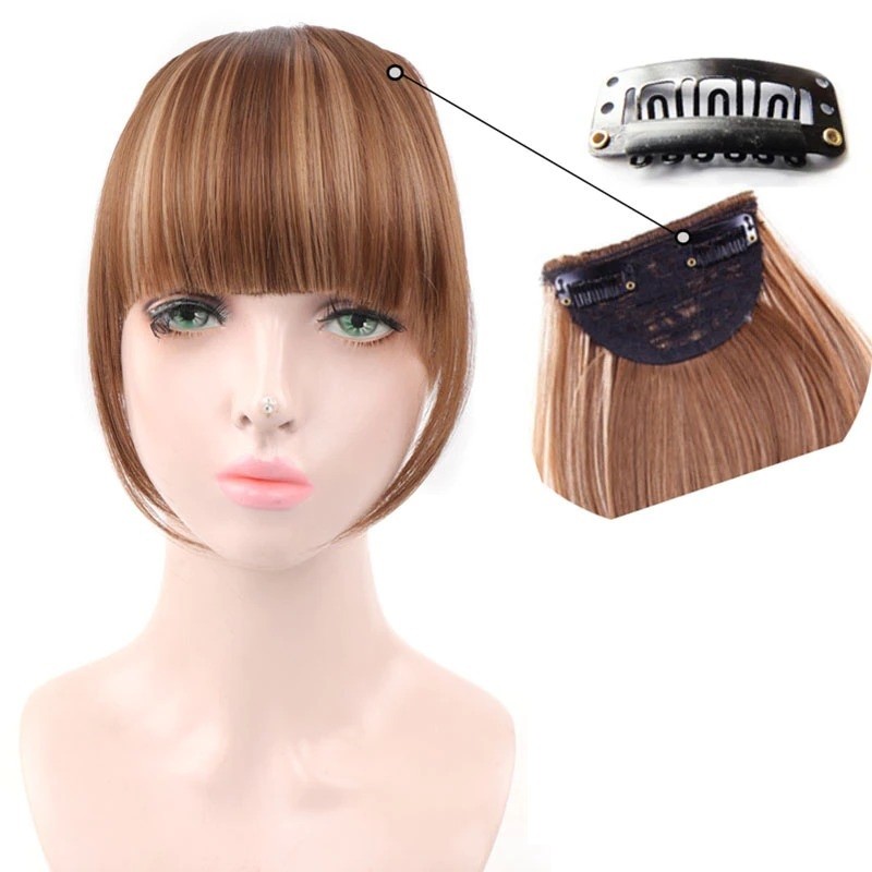 Postiço de franja lisa. Fácil e firme fixação com grampo. Criar a franja perfeita sem necessidade de cortar o cabelo. Para cabelos mais finos, adiciona volume e alonga o cabelo na testa. Disponível em várias cores.