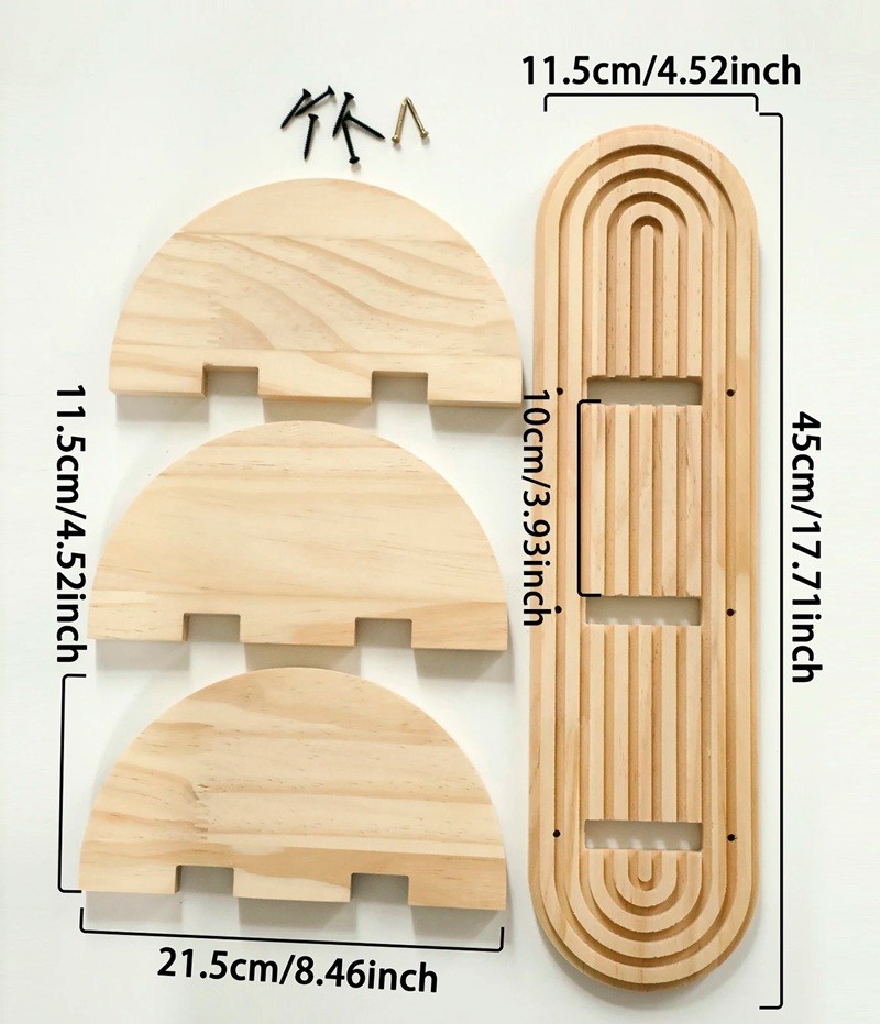 Página inicial Página inicial Casa e utensílios domésticos Decoração e acessórios para casa Decorações e acessórios de madeira Prateleira de parede em madeira estilo Boho com 3 prateleiras para decorações e plantas na parede