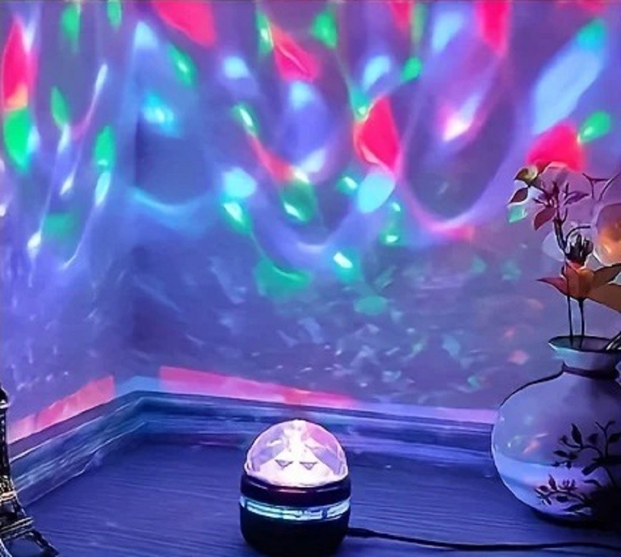 Efeito cristalino. Atmosfera relaxante criada pela luz projetada. Adequado para várias ocasiões. Descrição completa