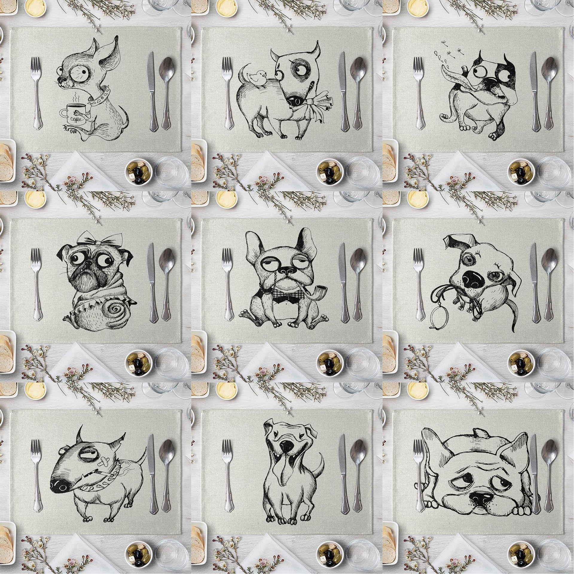Prostírão com motivo de cão desenhado