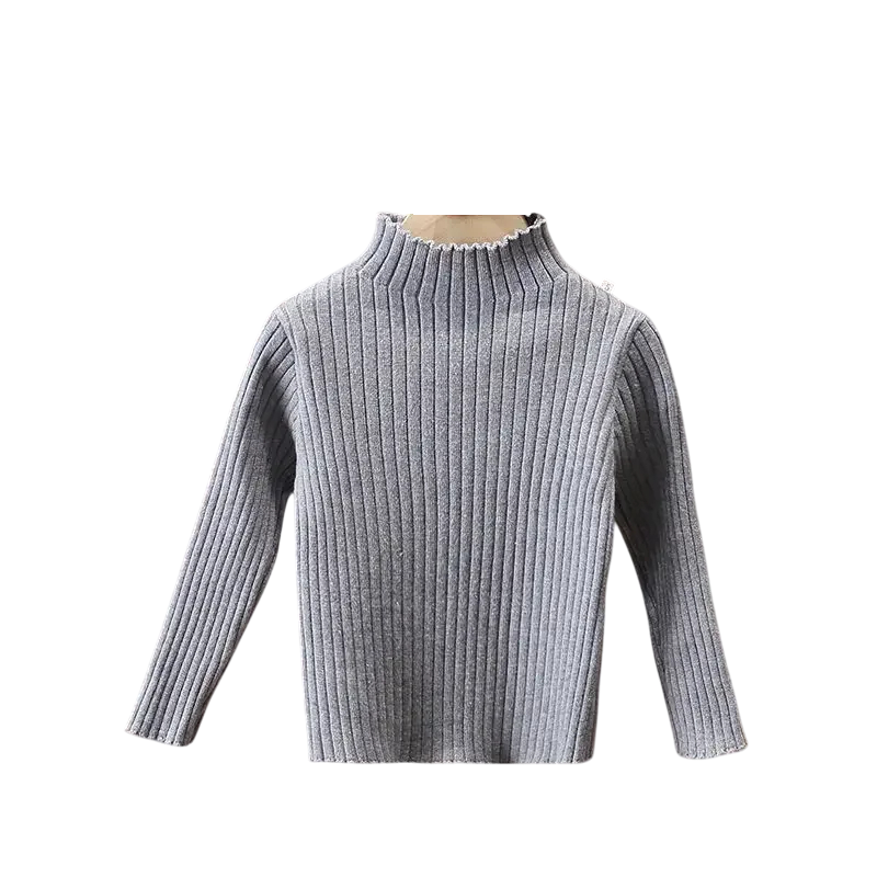 Pullover de criança suave com gola alta em algodão e viscose. Top tricotado quente, elástico e confortável para bebés, meninos e meninas em tempo frio. Descrição completa