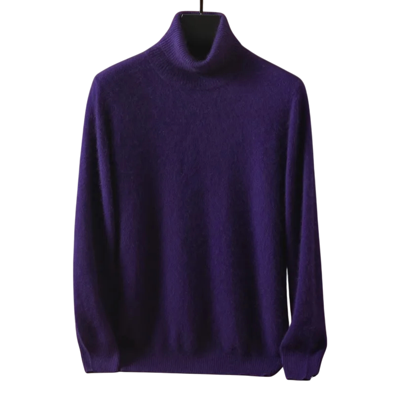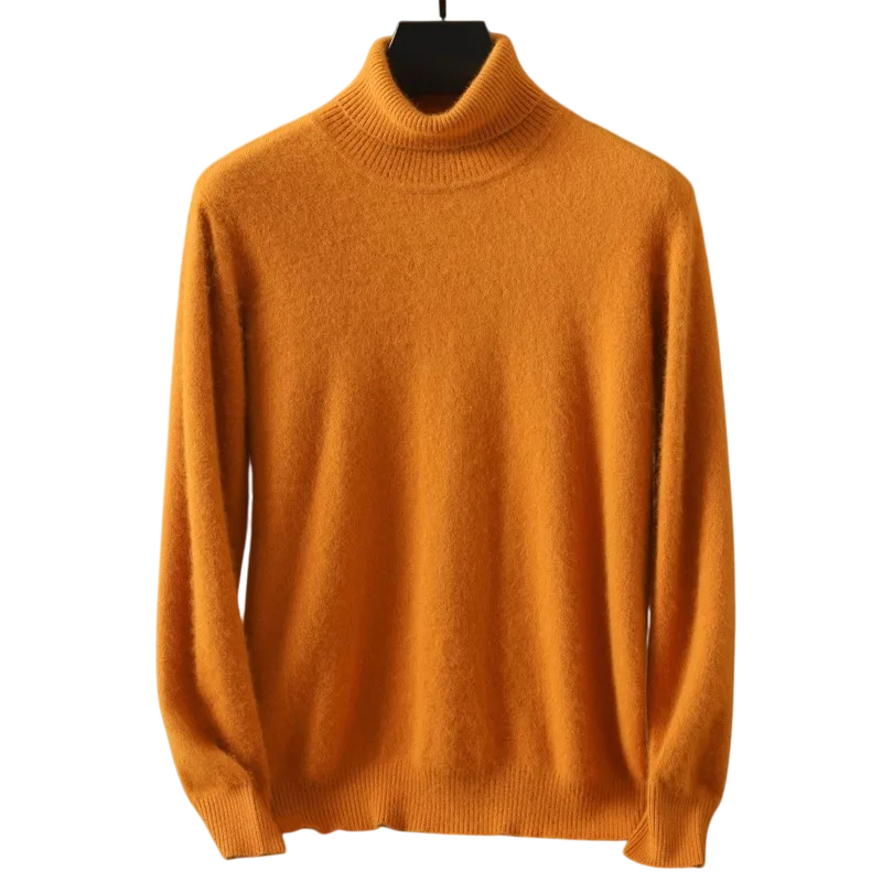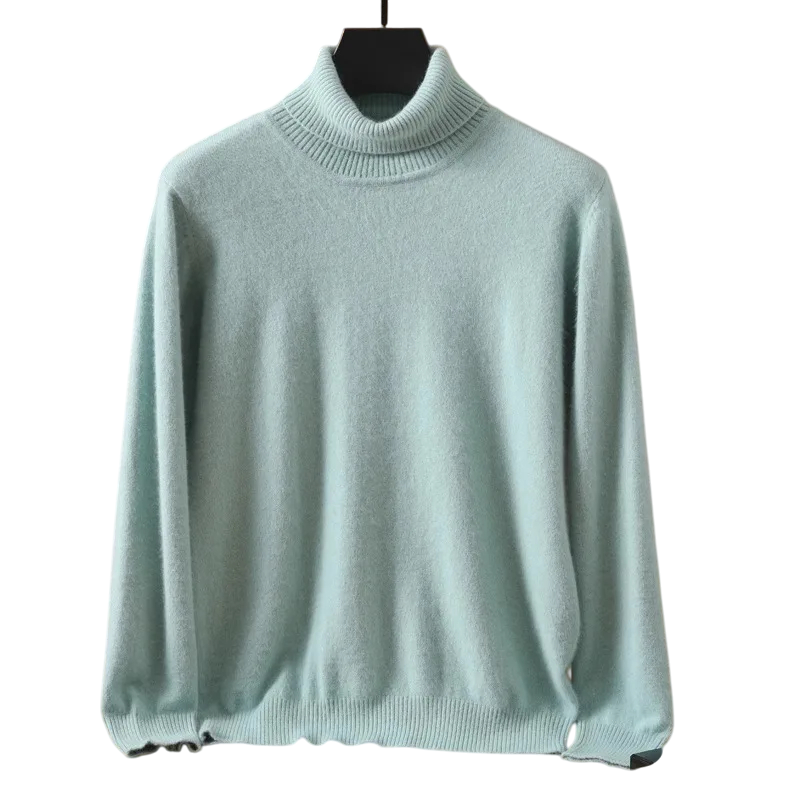 Pullover de homem em caxemira com mangas longas e gola alta Pullover peludo de uma só cor Roupa de inverno elegante Pullover quente Várias cores
