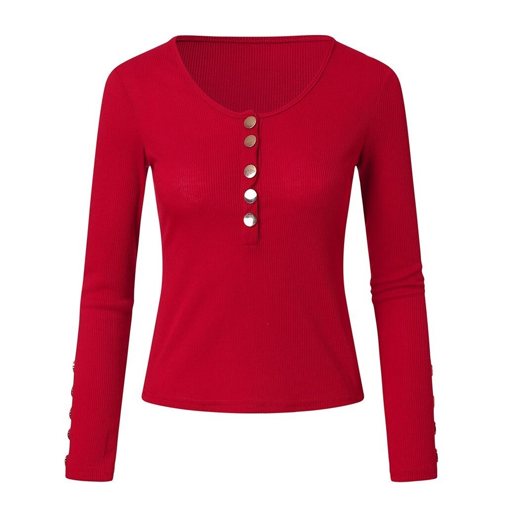 Pullover feminino com decote e botões