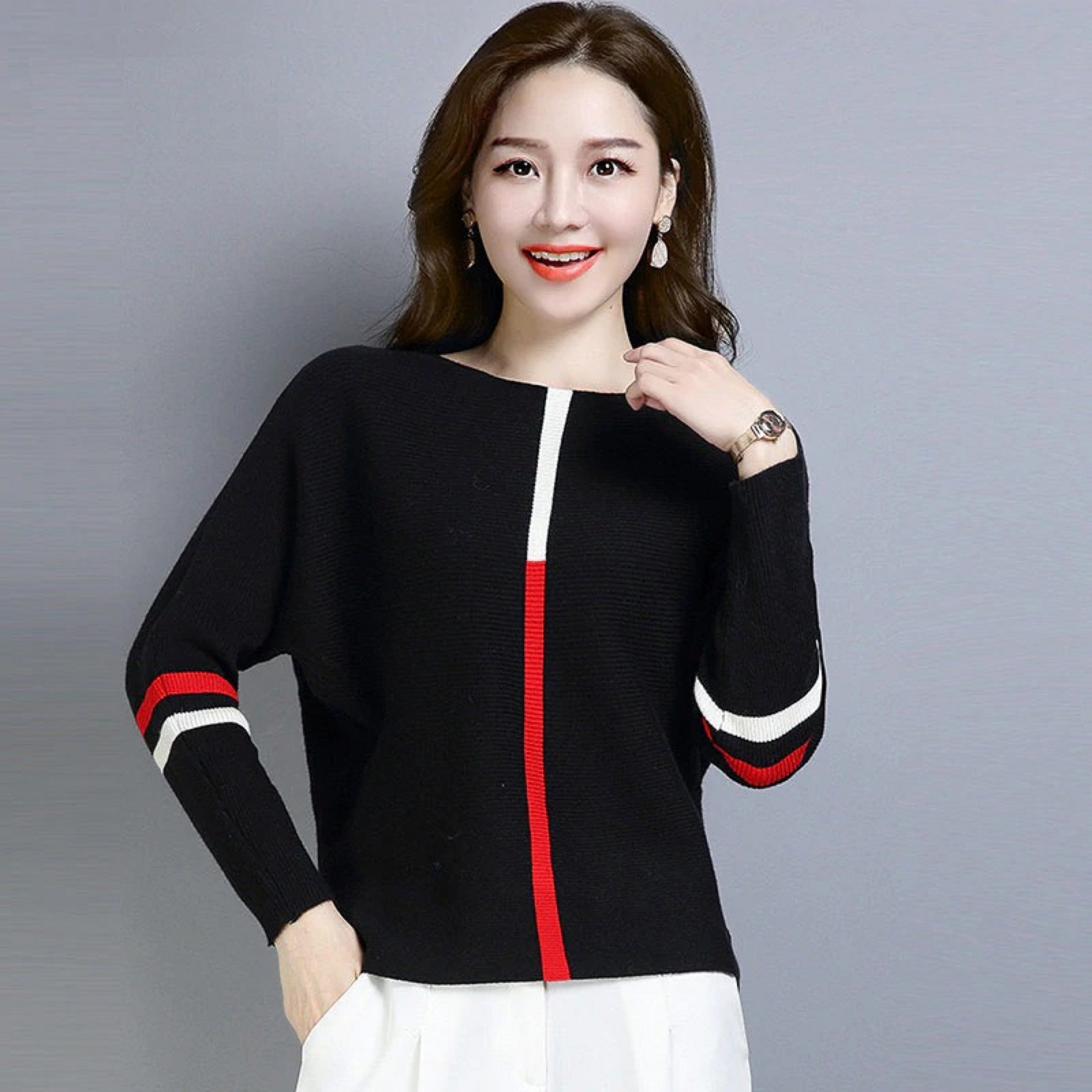 Pullover feminino com mangas morcego G414