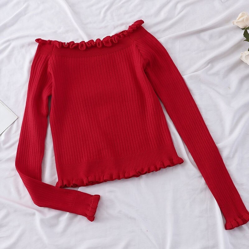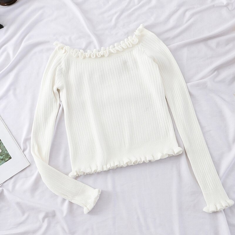 Pulôver curto feminino com volantes