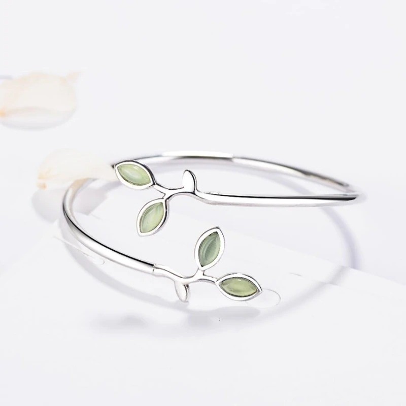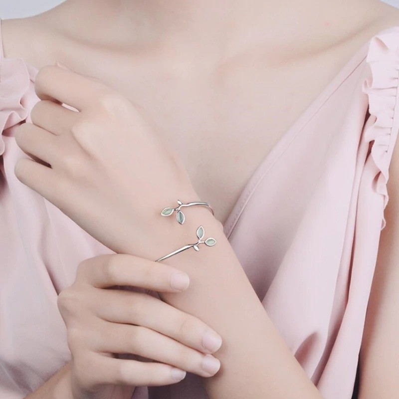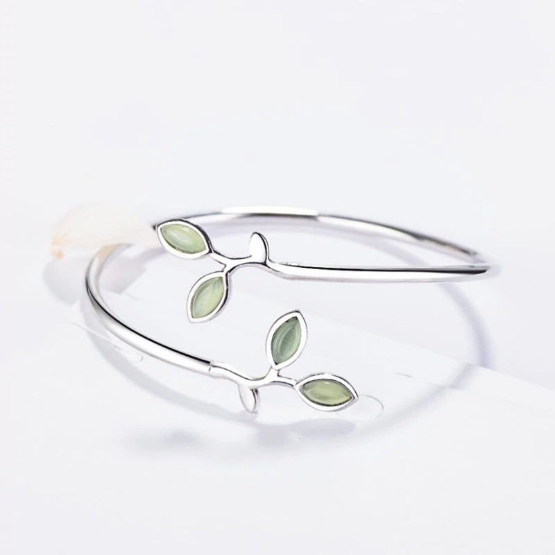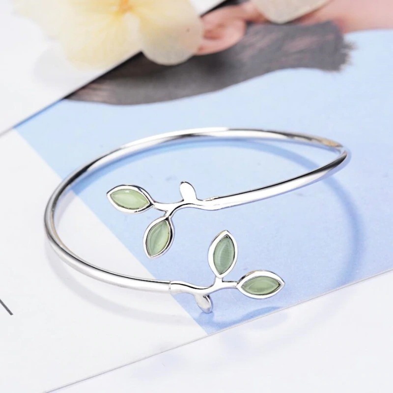 Pulseira aberta feminina com folhas