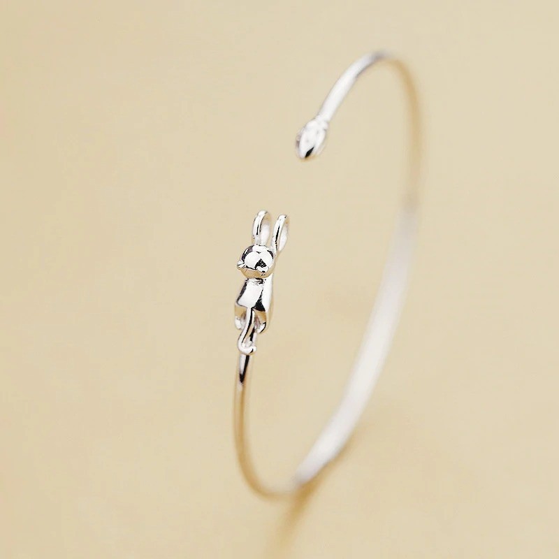 Pulseira aberta feminina com gato