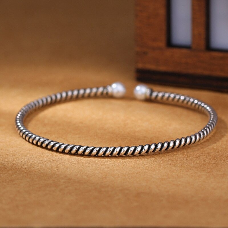 Pulseira aberta feminina com pérolas