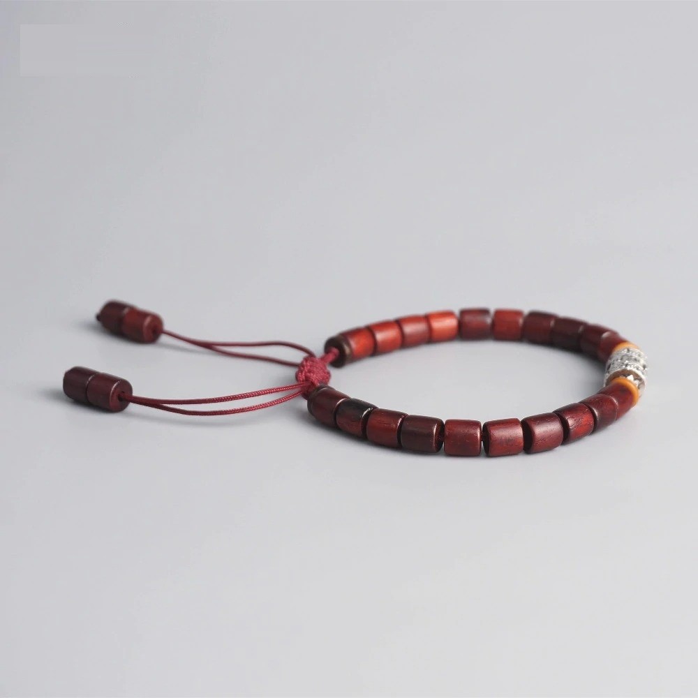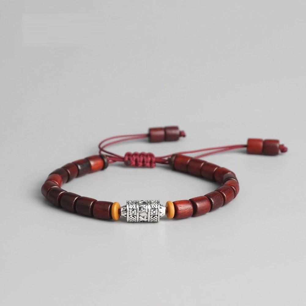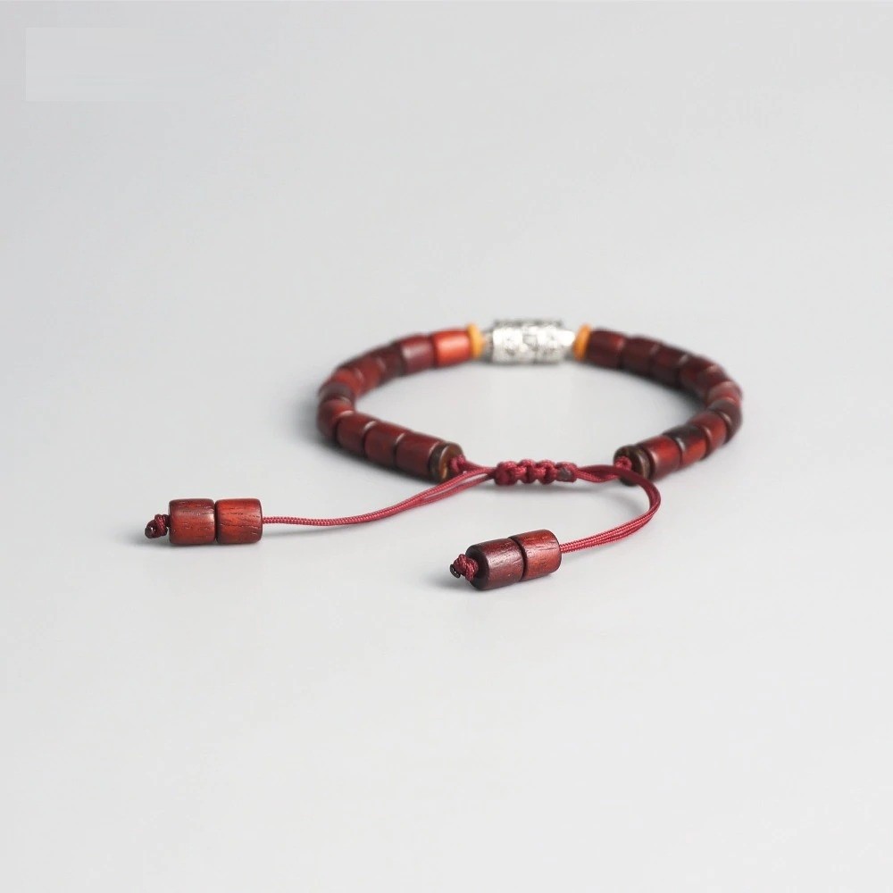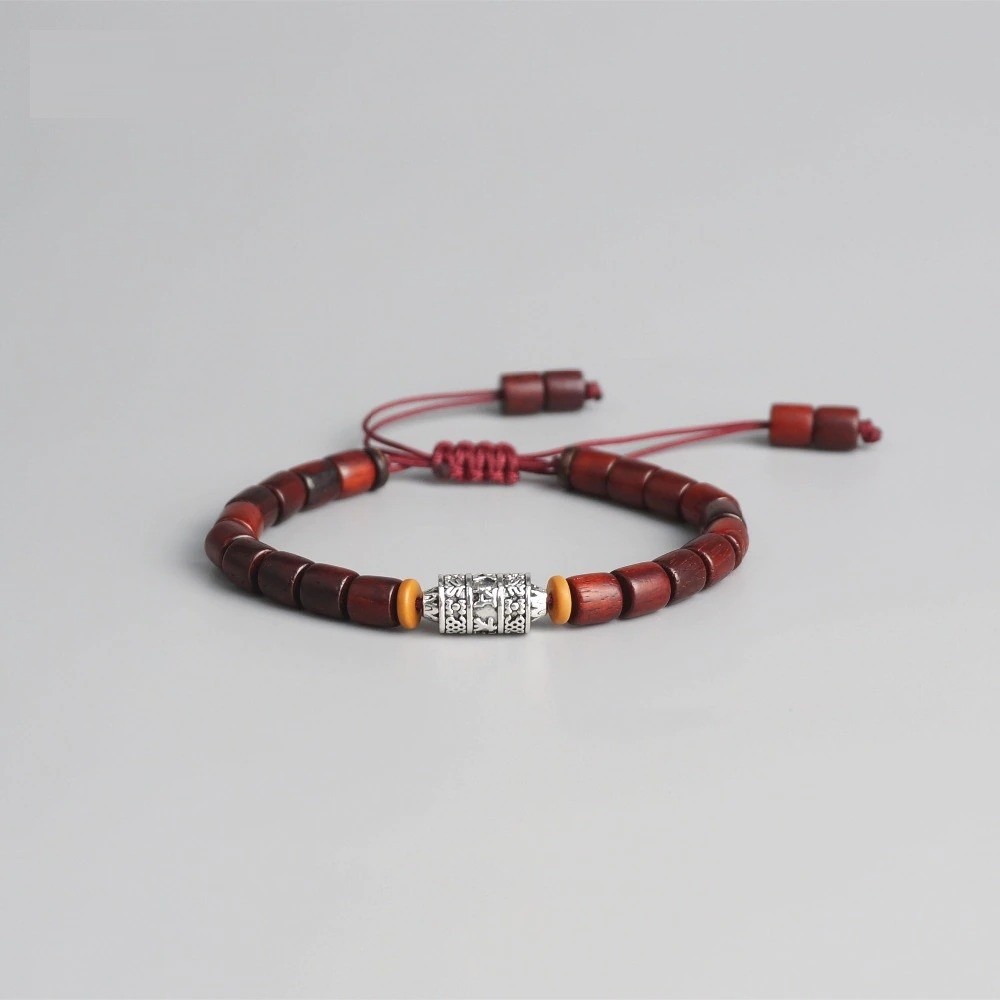Pulseira ajustável com contas de madeira