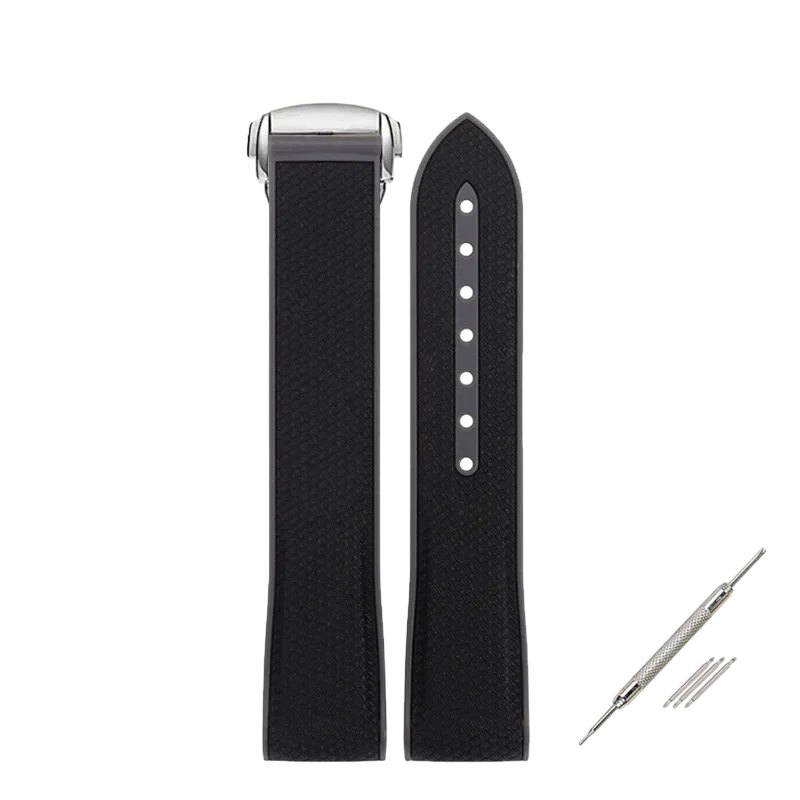 Esta pulseira em silicone de 20 mm é a escolha ideal para utilizadores que procuram uma combinação de durabilidade, aparência desportiva elegante e conforto. Graças ao material macio e flexível, adapta-se perfeitamente ao pulso e proporciona conforto mesmo durante longos períodos de uso. É compatível com os relógios Omega X Swatch MoonSwatch e também com o Seamaster 300, tornando-a adequada para uma ampla gama de modelos premium. A construção dobrável assegura um ajuste firme e um fecho seguro durante as atividades diárias. O pacote inclui também acessórios para reparação da pulseira, que permitem uma fácil substituição ou adição de peças.