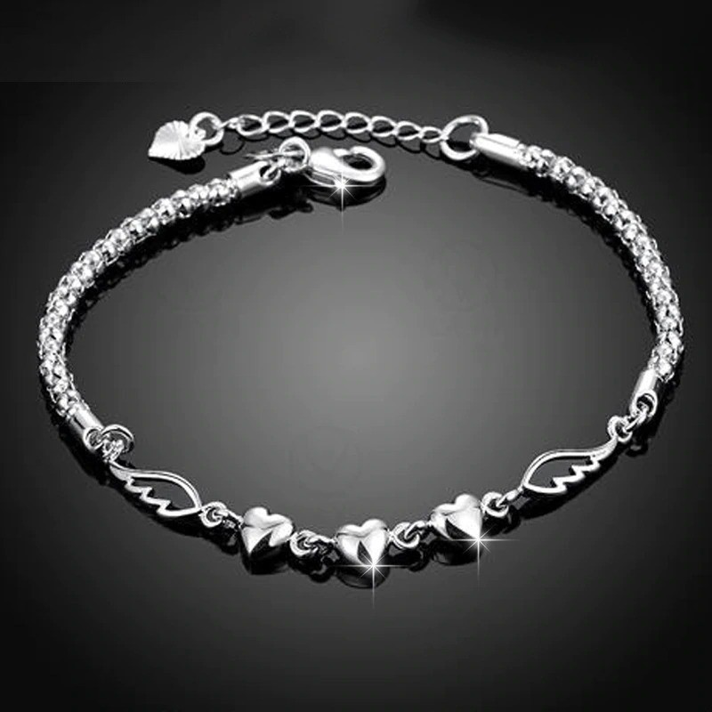 Pulseira de bolas feminina com corações e asas