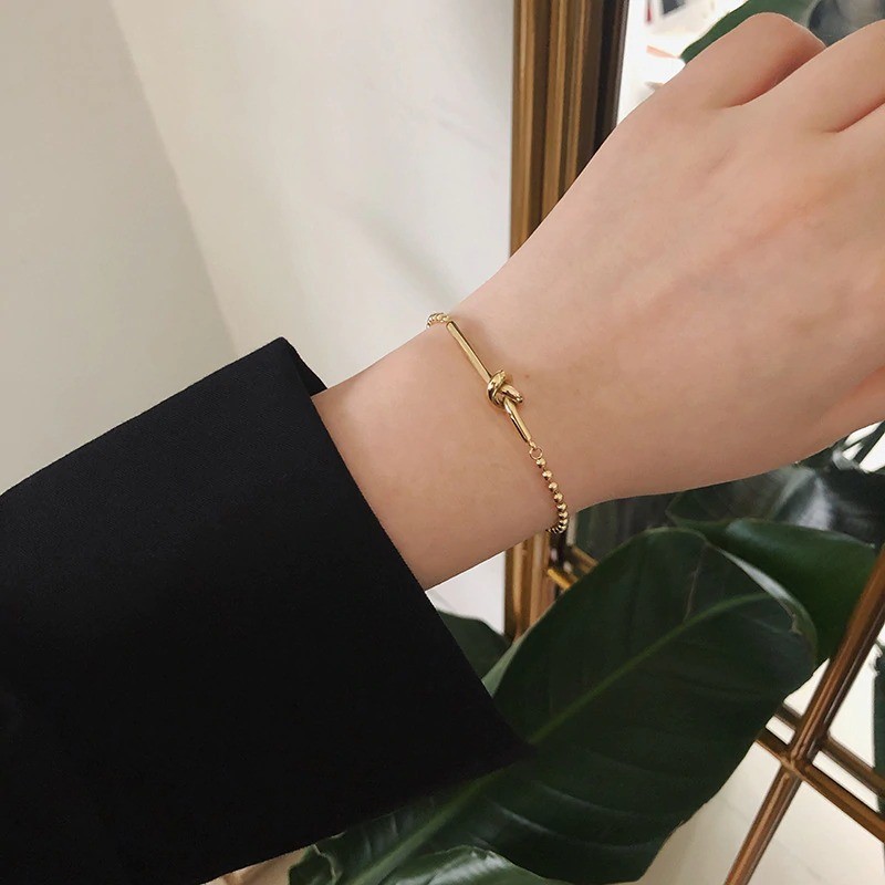 Pulseira de bolas feminina com nó